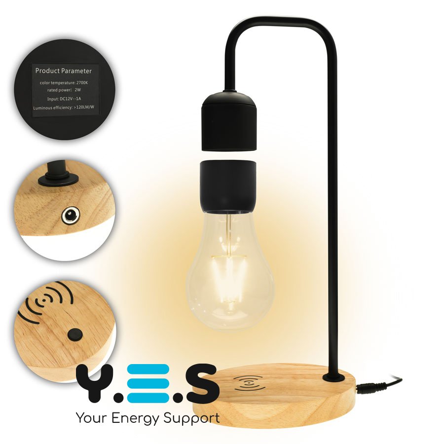 Левітирующая лампа, нічник "Лампочка" на квадратній стійці (левітаційна лампа), black, дерево