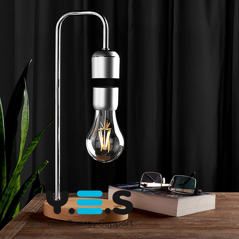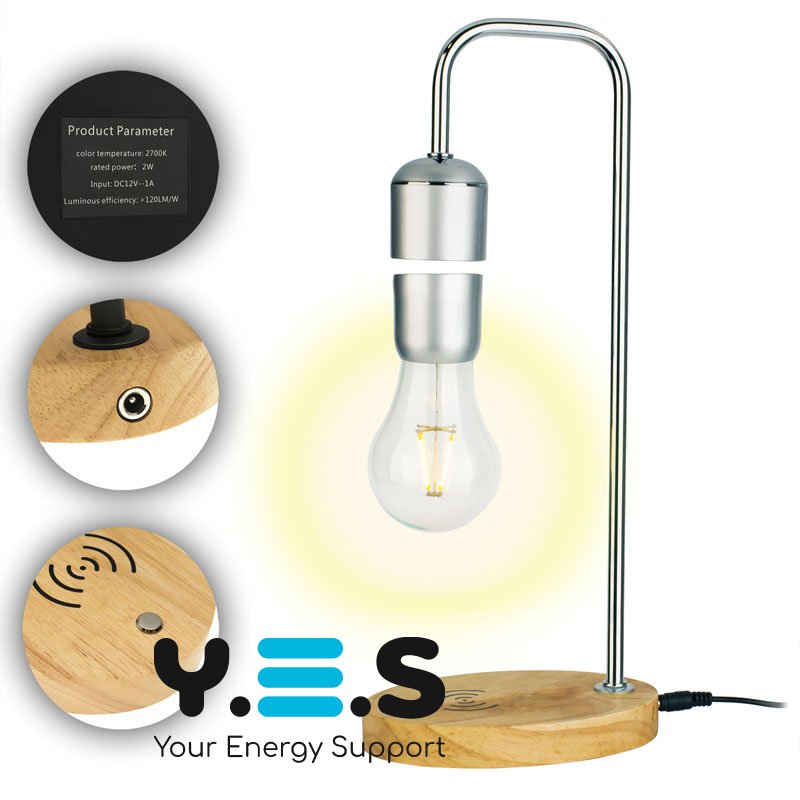 Левітирующая лампа, нічник "Лампочка" на квадратній стійці (левітаційна лампа), silver, дерево