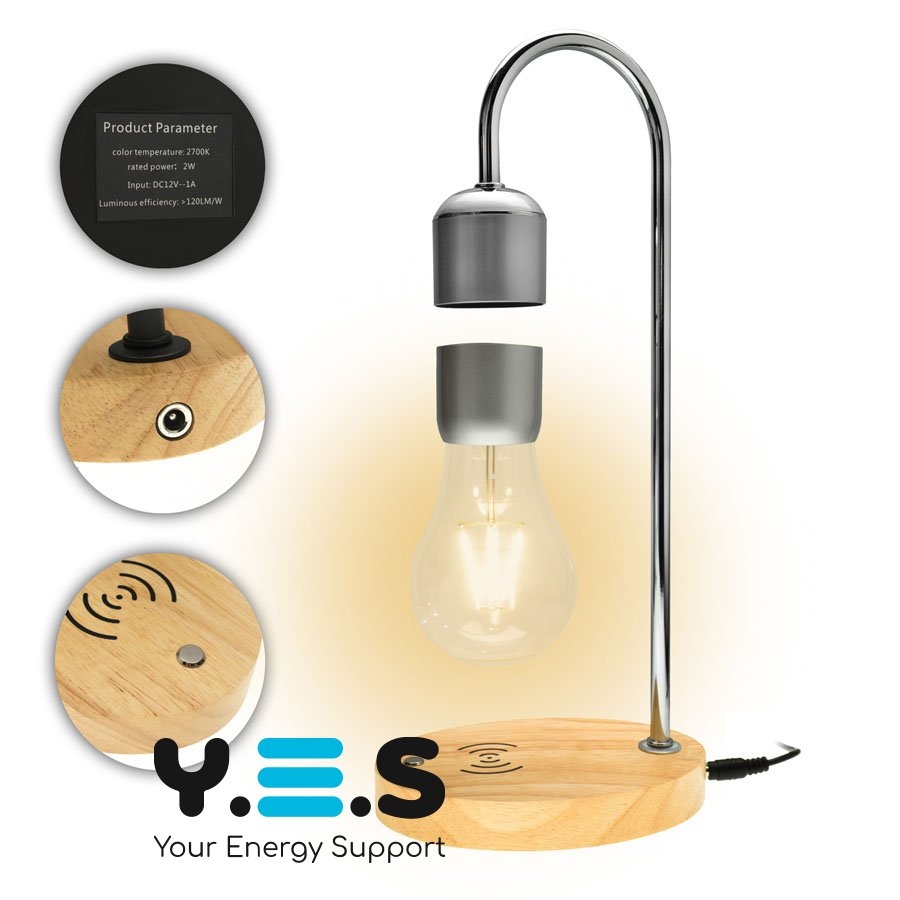 Левітуюча лампа-нічник «Лампочка» на напівкруглій стійці, silver, дерево