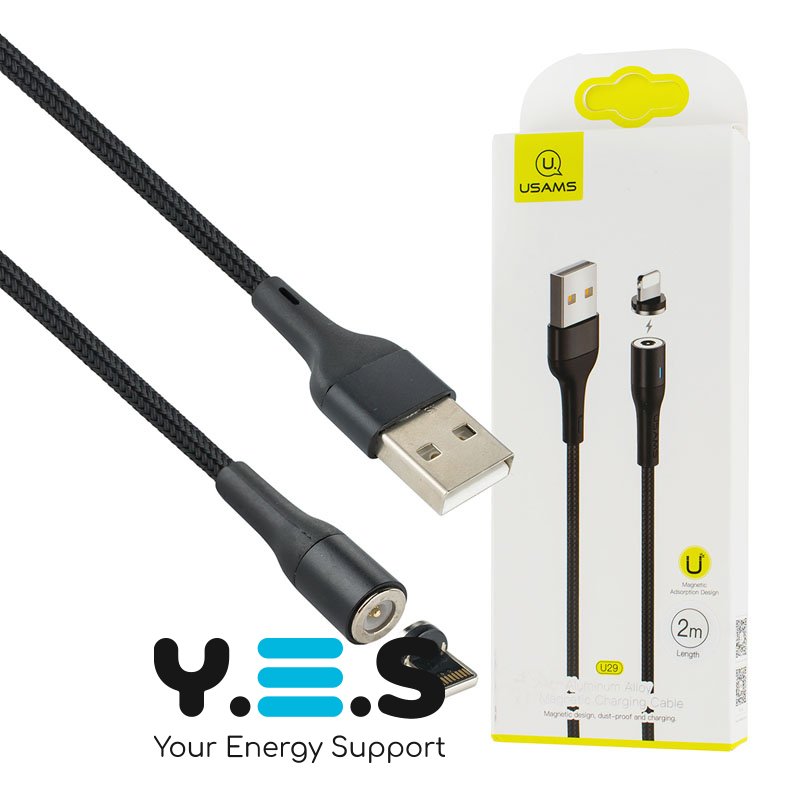 Магнітний кабель Usams US-SJ336 U29 Lightning, алюмінієвий, 2 м, чорний