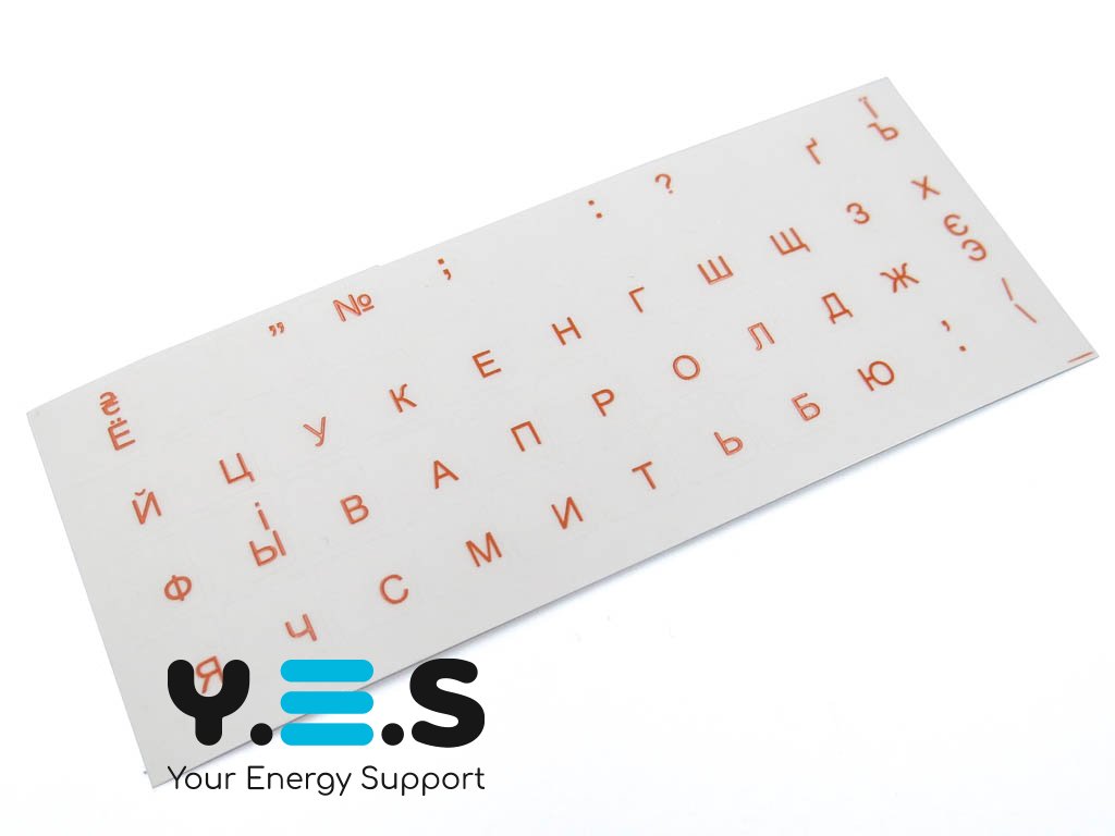 Матові прозорі наклейки на клавіатуру ноутбука з українськими та кириличними літерами (помаранчеві), із захисним UV-лаком для букв