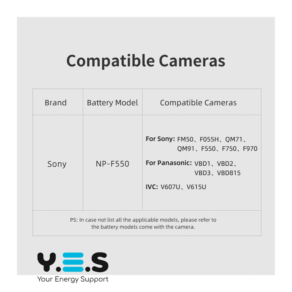 - Сумісні партномери: AC-F550-A, NP-F550 Dummy