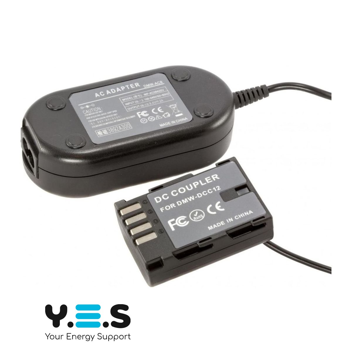 - У комплект Panasonic DMW-AC8+DMW-DCC12 Kit входить мережевий адаптер живлення DMW-AC8 та спеціальний DMW-DCC12 DC Coupler – «імітатор» батареї Panasonic DMW-BLF19e – який стає батарейним відсіком вашої камери. Призначений для стаціонарного використання фотоапарата без використання ресурсу акумулятора. Незамінний для студійної фото та ведозйомки.