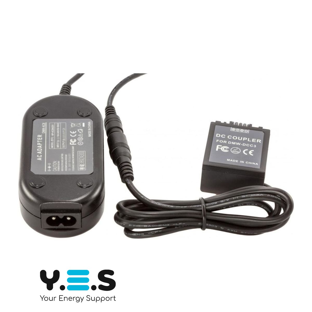 - У комплект Panasonic DMW-AC8+DMW-DCC3 Kit входить мережевий адаптер живлення DMW-AC8 та спеціальний DMW-DCC3 DC Coupler – «імітатор» батареї Panasonic DMW-BLB13 – який стає батарейним відсіком вашої камери. Призначений для стаціонарного використання фотоапарата без використання ресурсу акумулятора. Незамінний для студійної фото та ведозйомки.