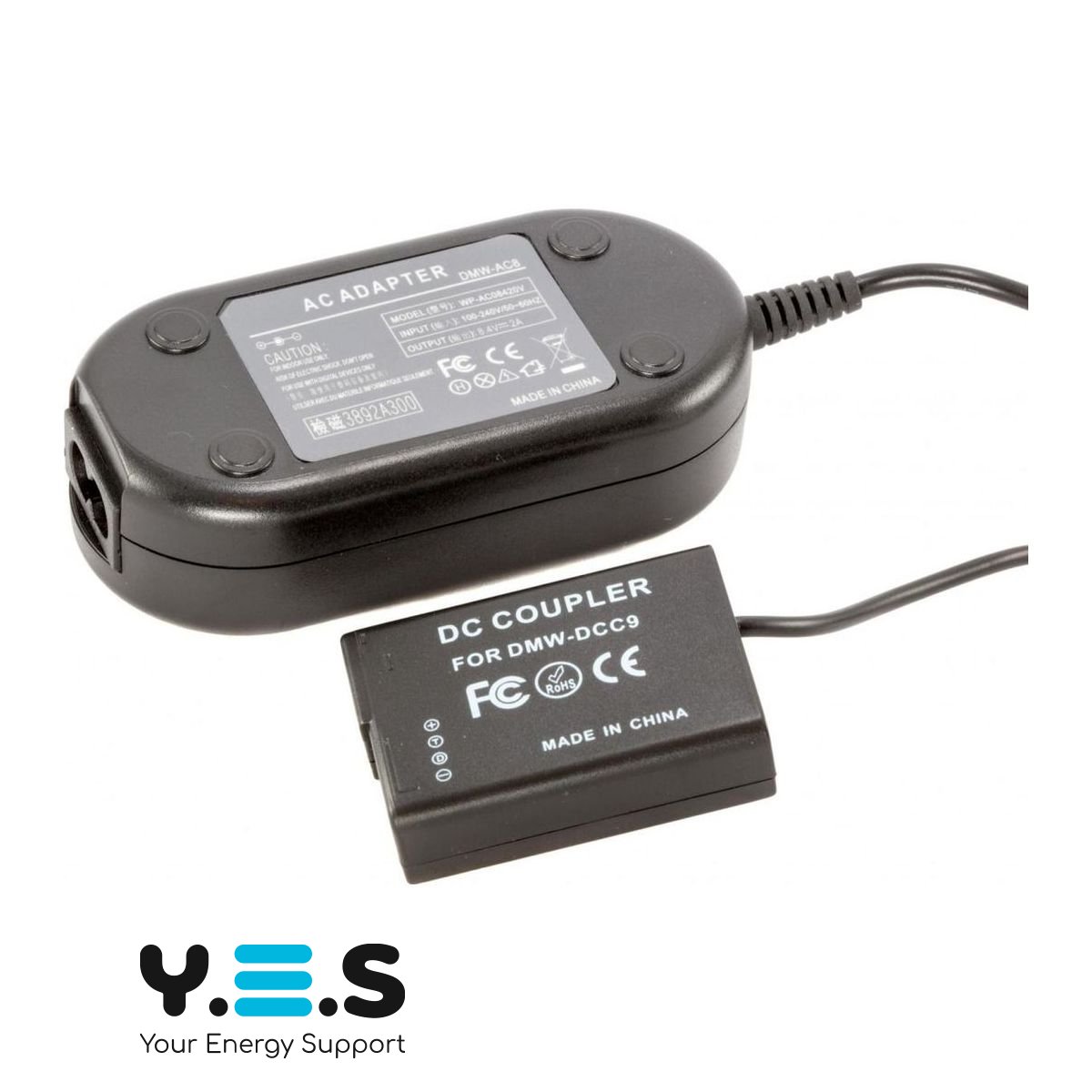 - У комплект Panasonic DMW-AC8+DMW-DCC9 Kit входить мережевий адаптер живлення DMW-AC8 та спеціальний DMW-DCC9 DC Coupler – «імітатор» батареї Panasonic DMW-BLD10 – який стає батарейним відсіком вашої камери. Призначений для стаціонарного використання фотоапарата без використання ресурсу акумулятора. Незамінний для студійної фото та ведозйомки.