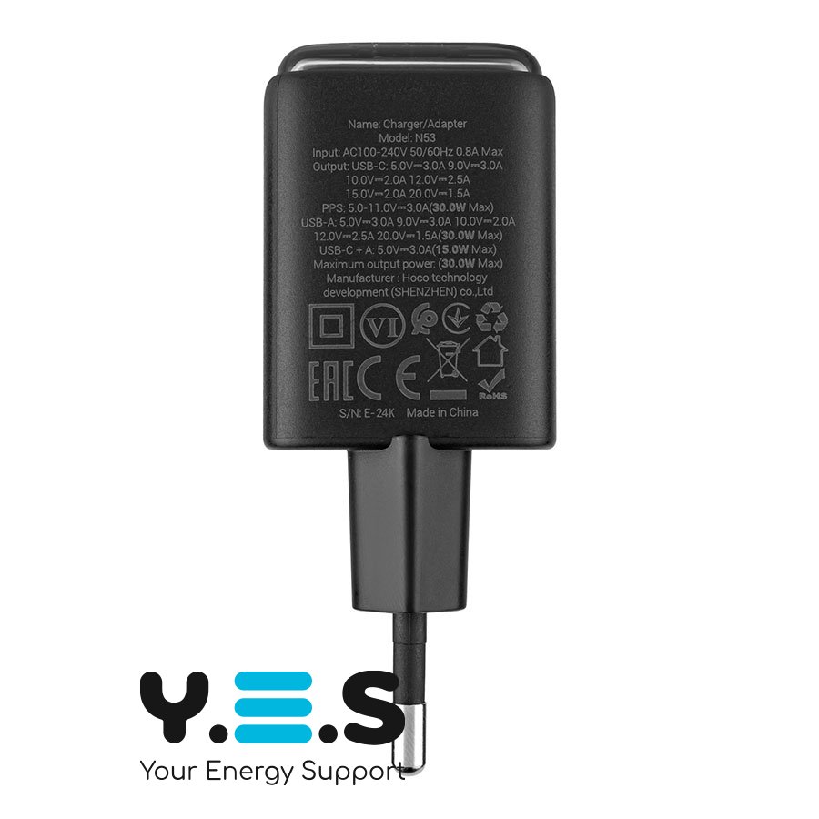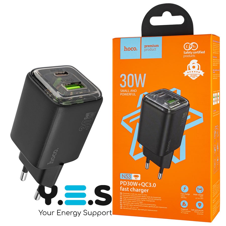 Мережевий зарядний пристрій HOCO N53 Monsoon PD 30W + QC3.0, чорний (6942007630429)