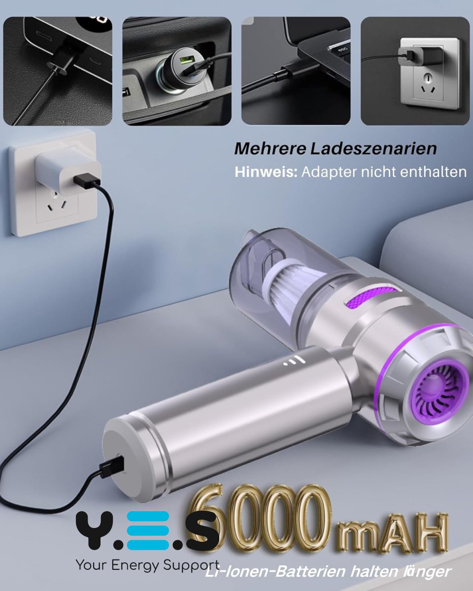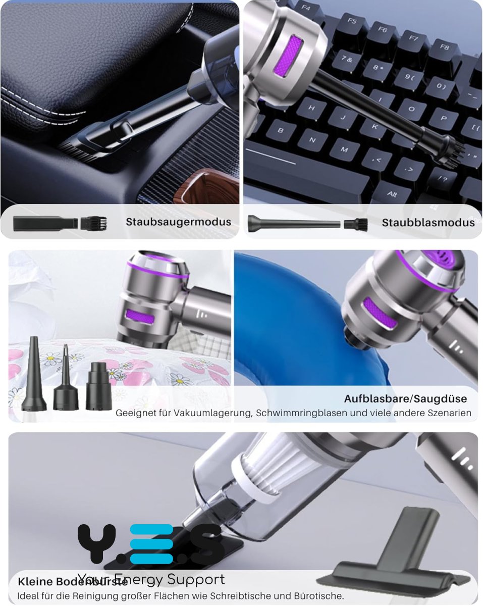 Міні бездротовий автопилосос HL-121, 9 насадок, 2000 мА·год, 100 Вт, 8000 об/хв