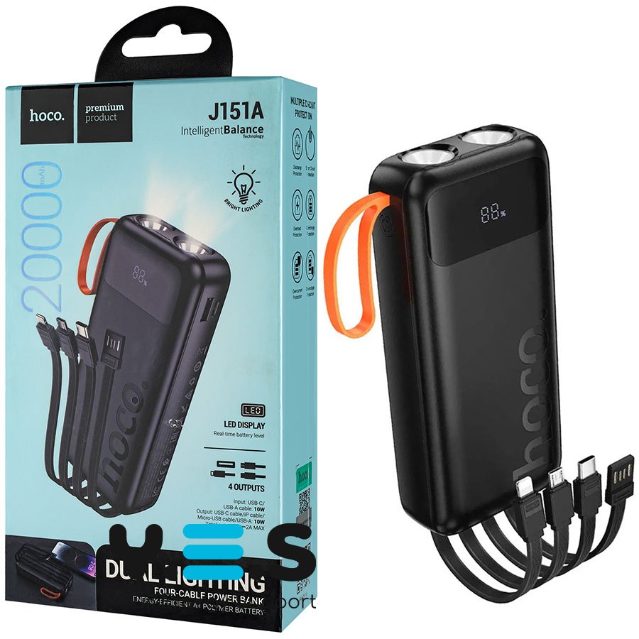 Мобільна батарея HOCO J151A Spirit 20000mAh з ліхтариком, чорна (6942007653374)