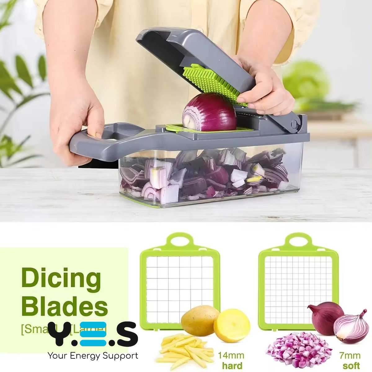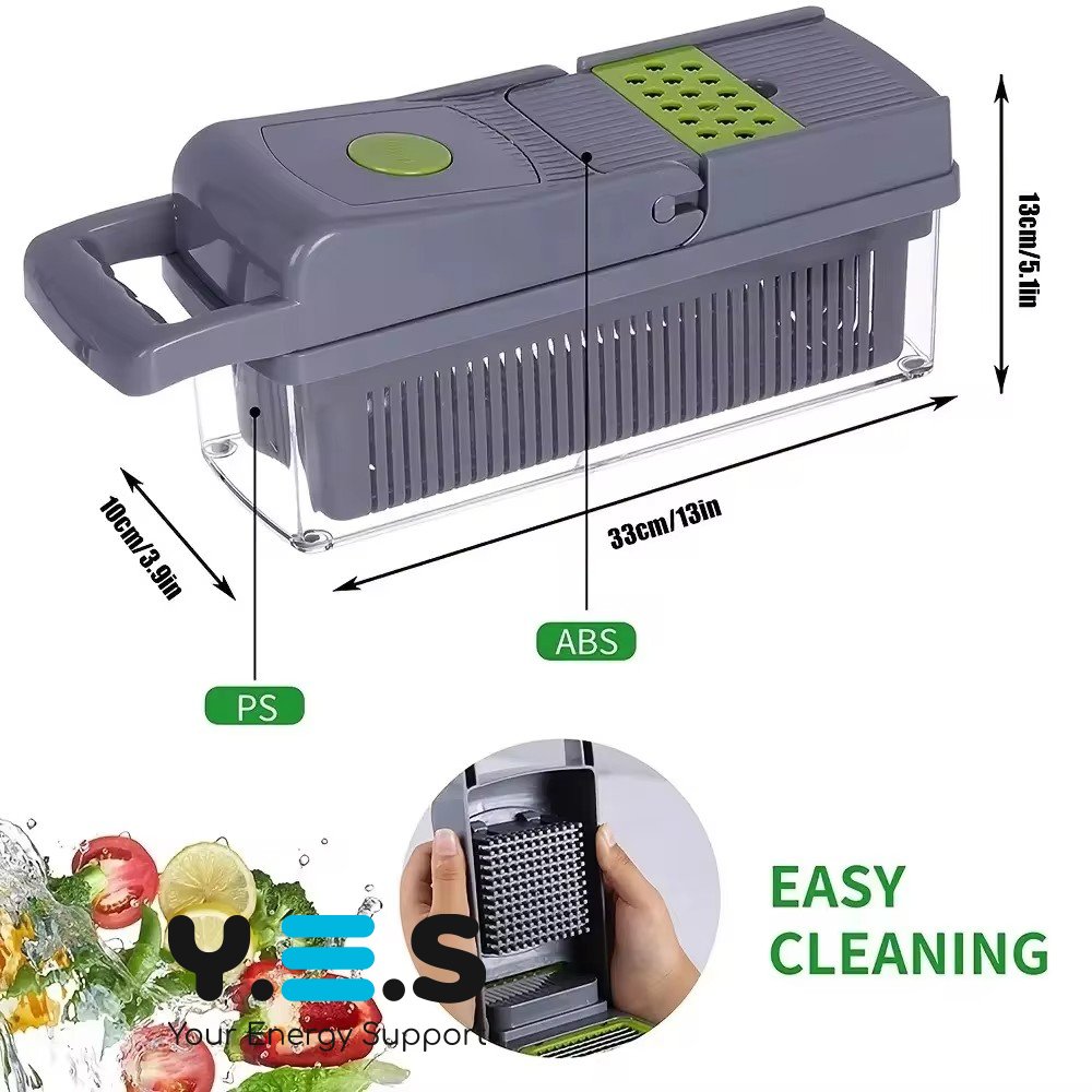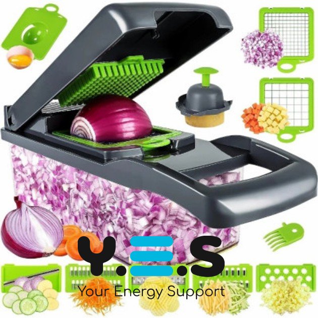 Універсальна овочерізка-мультислайсер Nicer Dicer 25 в 1 — зручна терка-подрібнювач із контейнером для швидкої підготовки інгредієнтів. Набір із 25 предметів допомагає акуратно нарізати та подрібнювати овочі й фрукти, підтримуючи порядок на кухні завдяки контейнеру. Практичний і надійний помічник для щоденного використання.