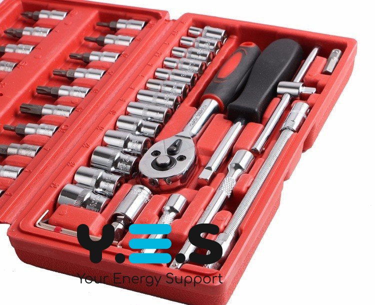 Професійний набір інструментів, 46 предметів | набір автомобільних ключів — практичний комплект для виконання повсякденних робіт з обслуговування та ремонту авто, а також побутових завдань. Набір розрахований на регулярне використання, забезпечує зручність у роботі та допомагає тримати основний інструмент під рукою.