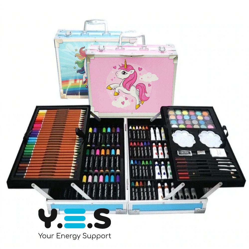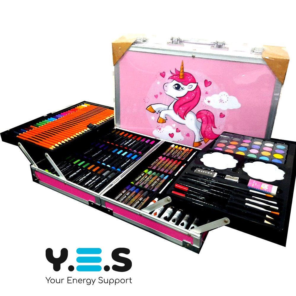 Набір для малювання й творчості «Єдиноріг» 145 предметів, двоярусний кейс, рожевий