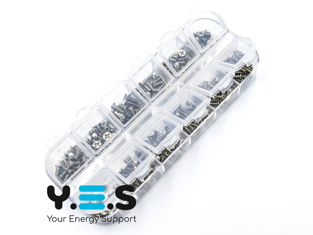 Набір гвинтів для ноутбука 240 шт (12×20): корпусні M2/M2.5/M3, нікельовані