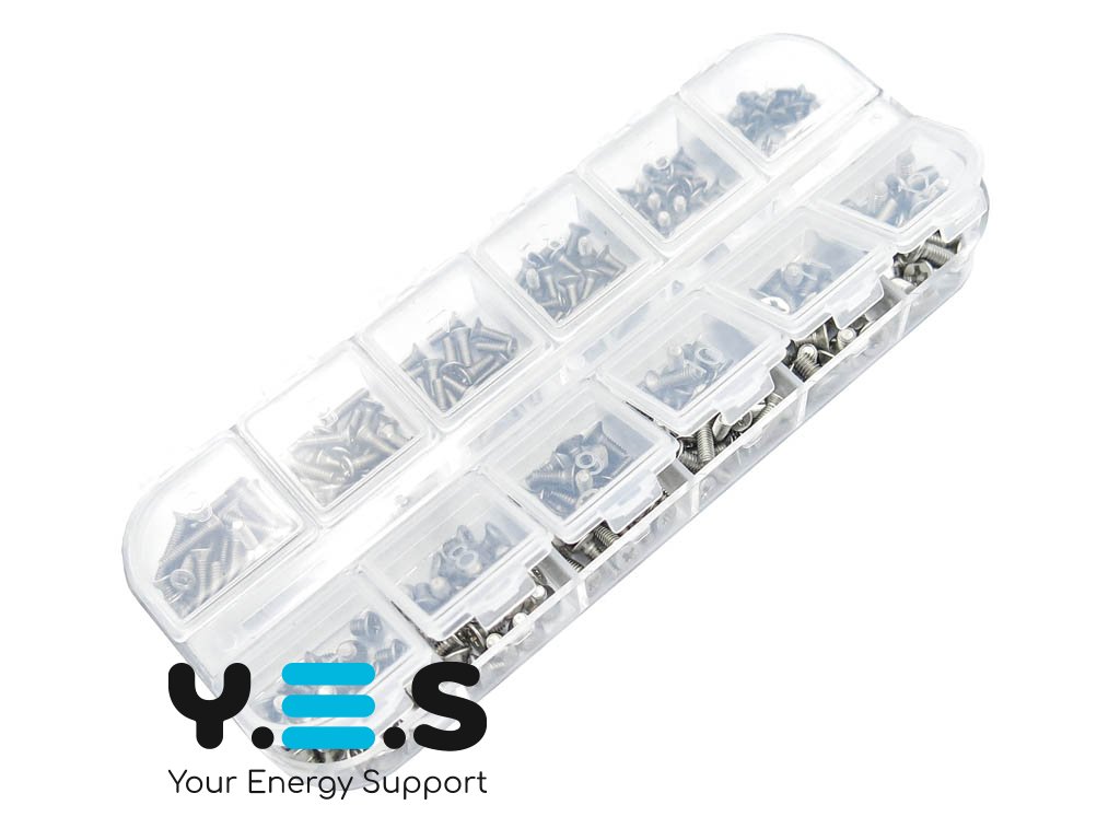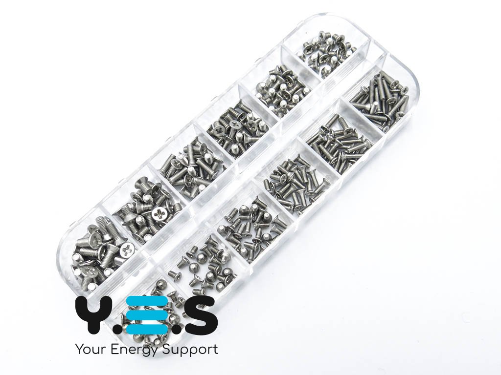 Набір гвинтів для збирання ноутбука — практичний комплект для ремонту та збирання ноутбуків і корпусних елементів. У наборі підібрані найбільш поширені розміри різьби, що дозволяє швидко замінити втрачені або пошкоджені кріплення. Гвинти виготовлені з нержавіючої сталі, тому підходять для щоденного використання та забезпечують надійне кріплення.