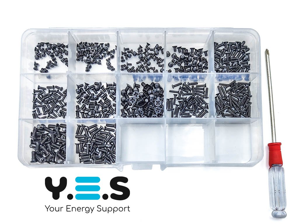 Набір гвинтів для ноутбука 600 шт (12×50): корпусні болти M2/M2.5/M3, чорні