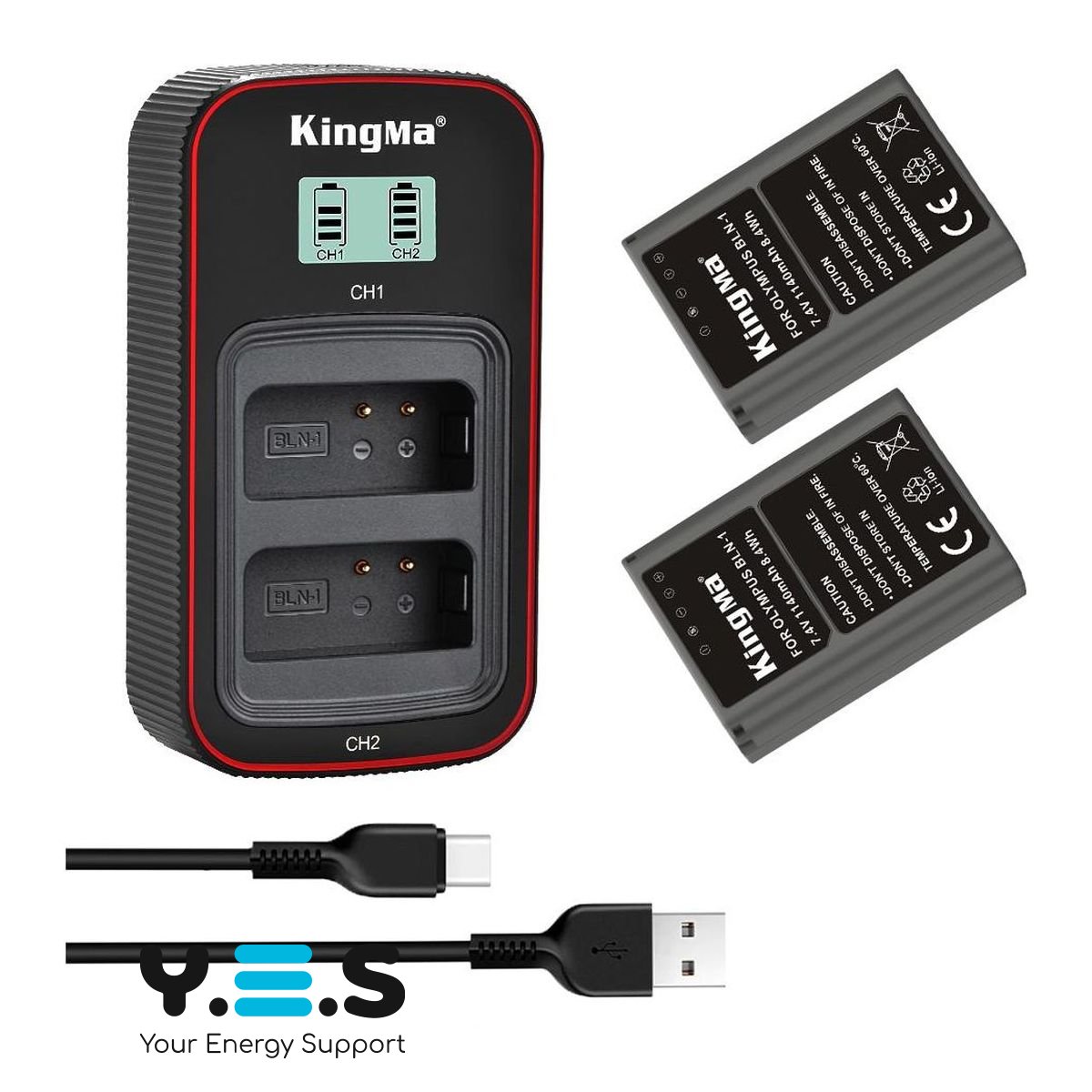 BestBatt 3-Pack KingMa Olympus BLN-1 — комплект для живлення фотокамер Olympus: 2 акумулятори KingMa BLN-1 та 1 зарядний пристрій на дві батареї. Практичне рішення для щоденного використання, коли потрібен запас енергії та зручна зарядка.