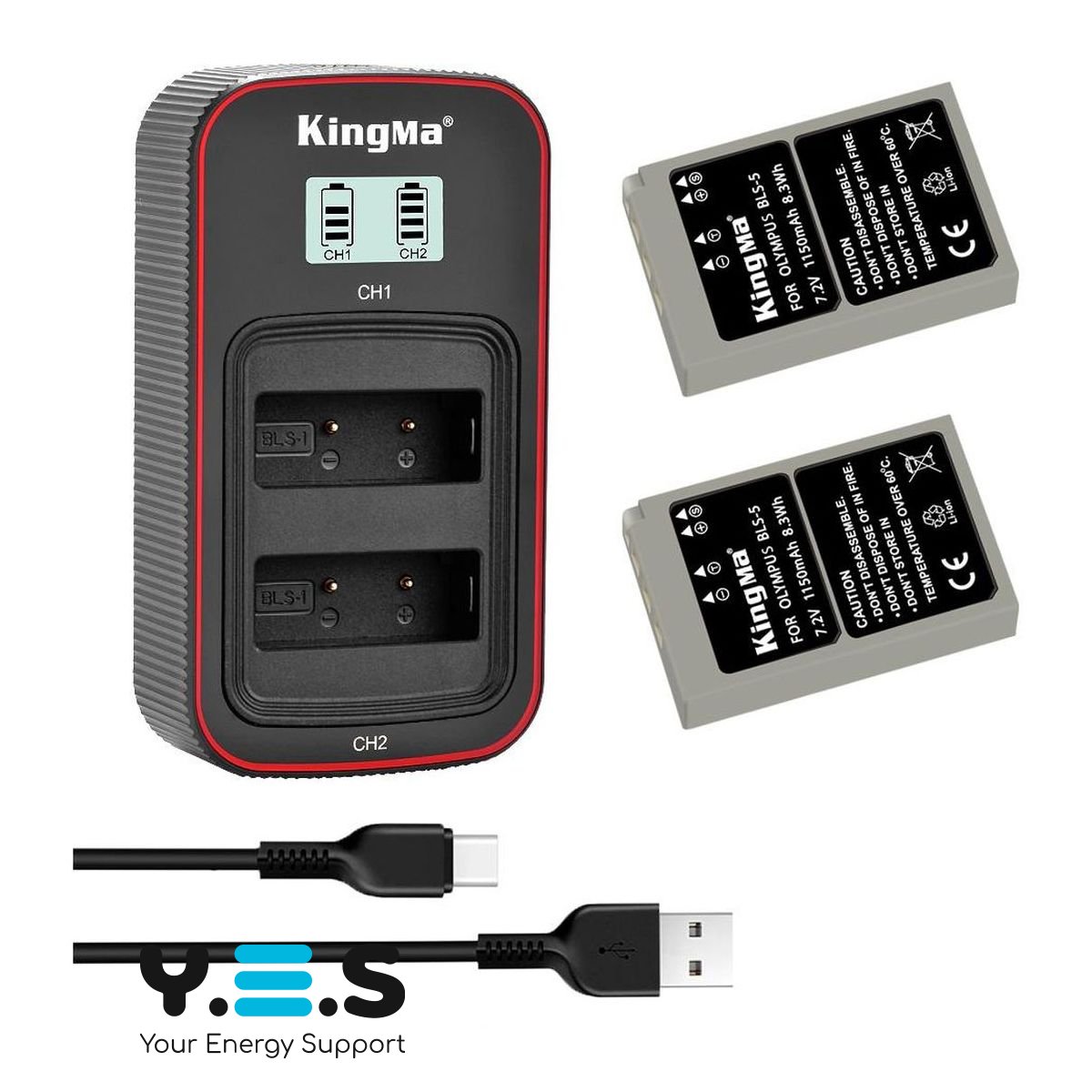 Набір KingMa BLS-5: 2 акум + зарядка на 2, для Olympus E-PL2/E-PL5/E-PM1/E-PM2