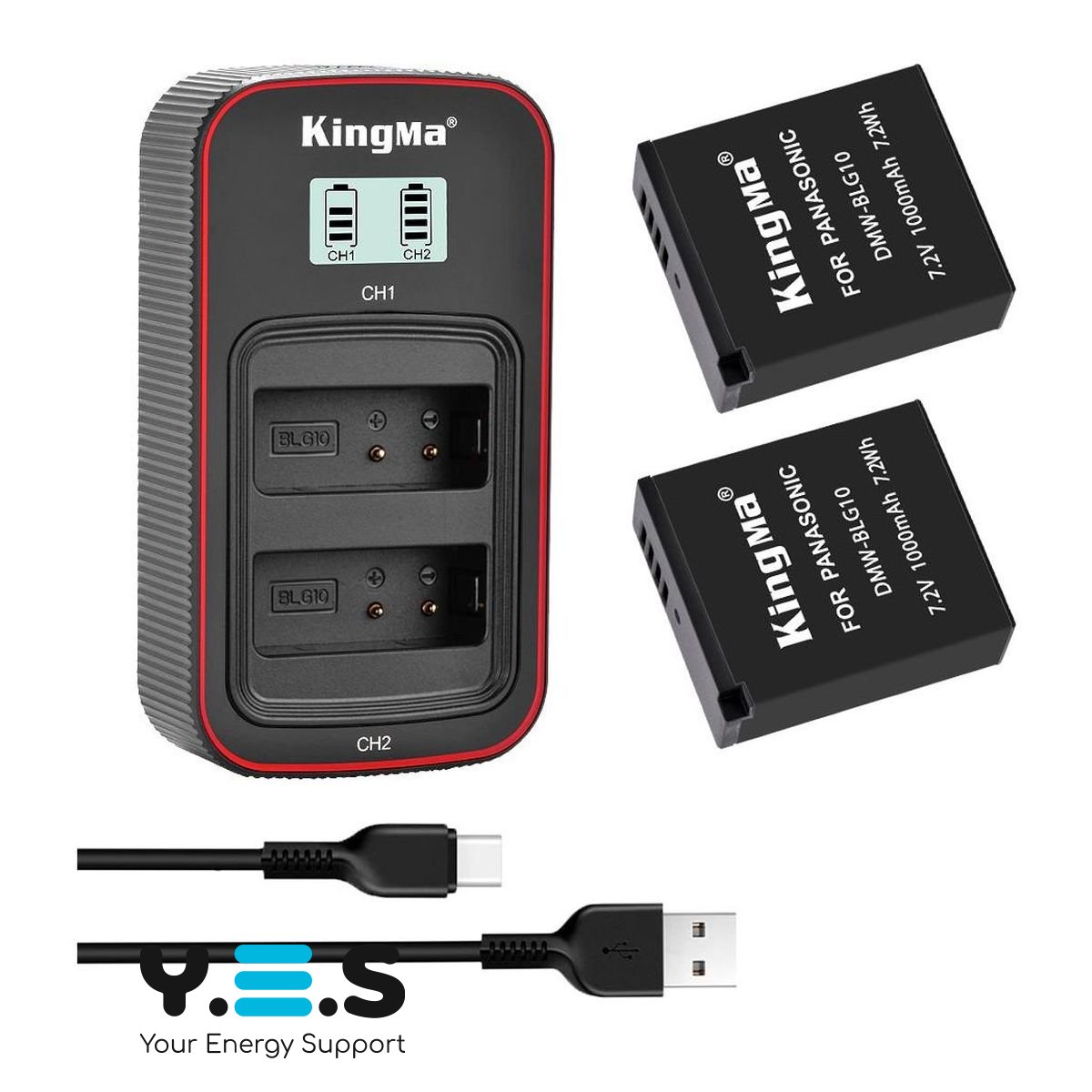 BestBatt 3-Pack KingMa Panasonic DMW-BLG10 — практичний комплект для щоденного використання: 2 акумулятори KingMa DMW-BLG10 та подвійний зарядний пристрій (заряджає одночасно дві батареї). Підійде як основне або резервне живлення для вашої камери, забезпечуючи надійну роботу під час зйомок удома, у поїздках та на виїзних сесіях.