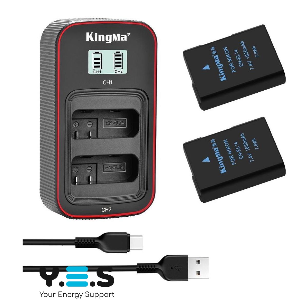 Набір KingMa EN-EL14: 2 акум. + ЗП на 2, для Nikon D3100/D3200/D3300/D5100/D5200/D5300