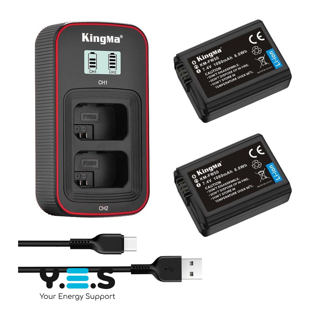 Набір KingMa NP‑FW50 2 АКБ + зарядка на 2, для Sony A7/A7R/A7S/A6000/A6300/A6500