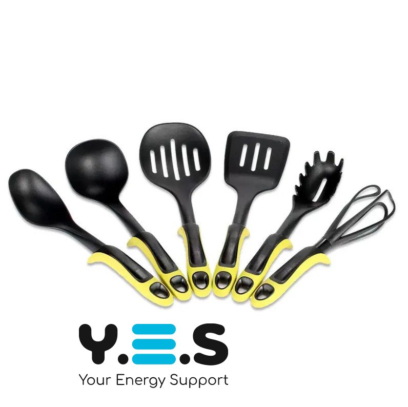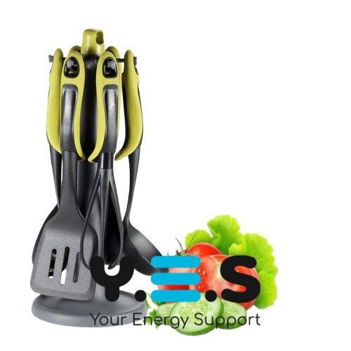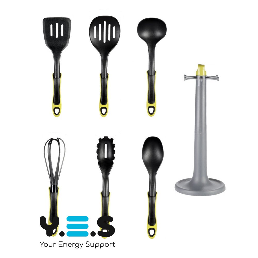 Набір силіконового кухонного приладдя на підставці (7 предметів) — практичний кухонний набір для щоденного використання, спеціально підходить для антипригарного посуду. Силіконові робочі частини дбайливо контактують з поверхнею, а підставка допомагає зручно зберігати приладдя та підтримувати порядок на кухні.