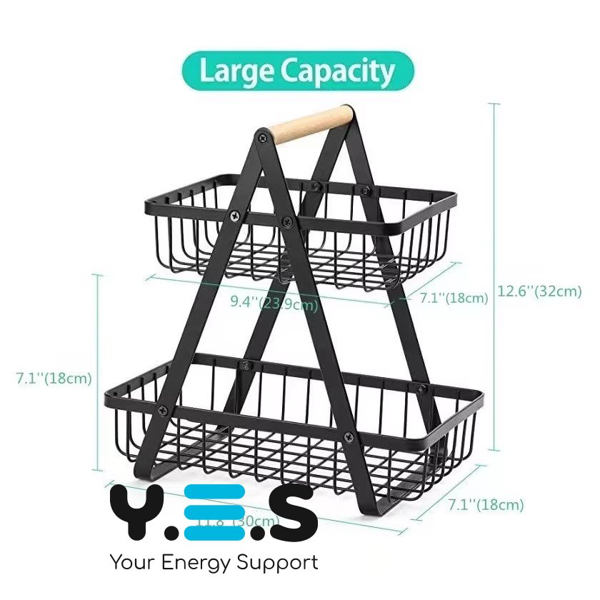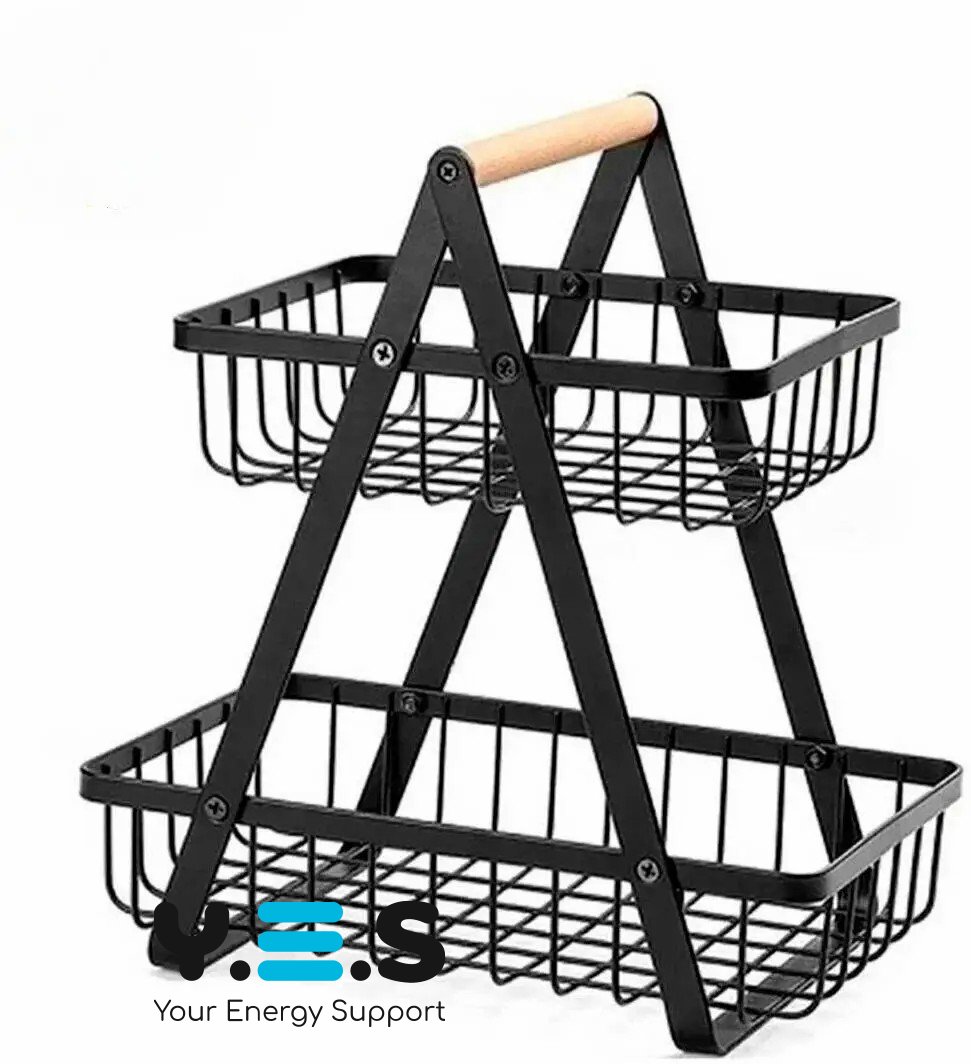 Настільний двоярусний кошик‑фруктівниця Double Fruit Basket — зручне рішення для щоденного зберігання та подачі фруктів. Двоярусна конструкція економить місце на столі, а дерев’яна ручка полегшує перенесення. Розбірний металевий корпус робить кошик практичним у використанні та догляді. Якісний і надійний варіант для кухні на кожен день.