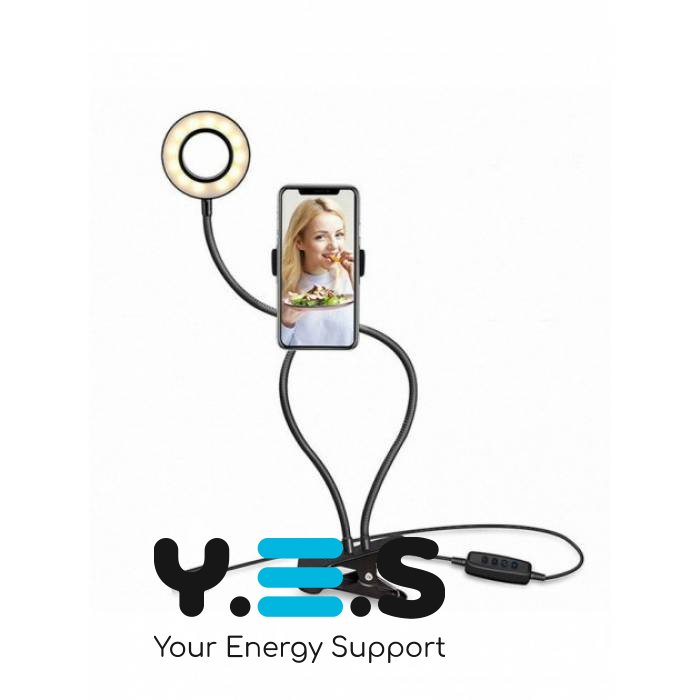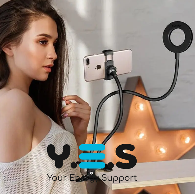 Настільна світлодіодна гнучка LED лампа з утримувачем телефону — практична кільцева USB-лампа для щоденного використання вдома або на робочому місці. Гнучка конструкція дозволяє зручно налаштувати напрямок світла, а утримувач телефону допомагає розмістити смартфон під час відеодзвінків, зйомки або читання. Лампа підтримує тепле та холодне світло для комфортного освітлення в різних умовах. Якісний і надійний світильник для регулярного використання.