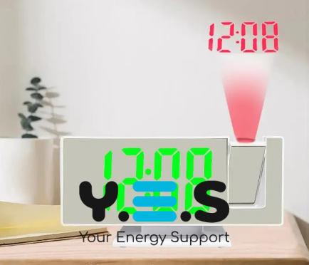 Настільний дзеркальний годинник 3618LP з проєктором, будильником, календарем і термометром, зелена підсвітка