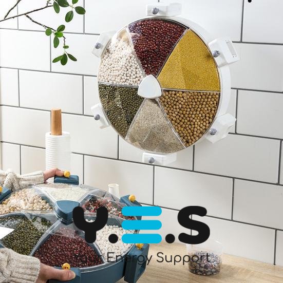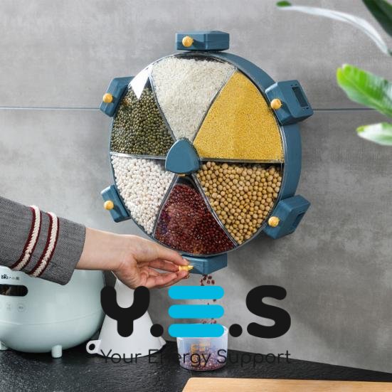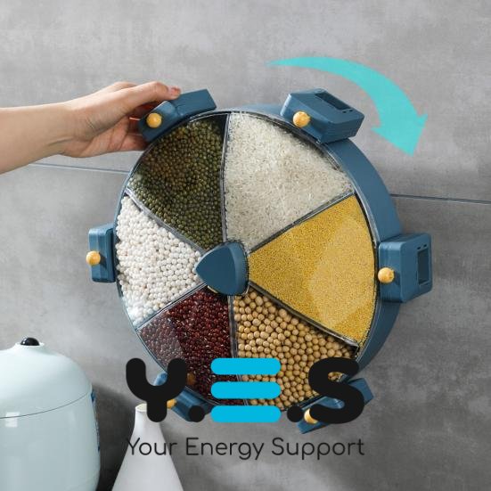 Настінний мультизерновий органайзер-млин для круп і сипучих, 6 секцій, обертання 360°