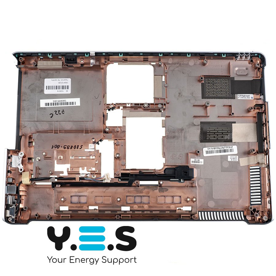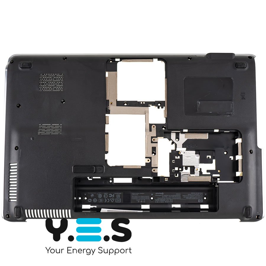 Б/У нижня частина корпуса для ноутбука HP Pavilion dv6 (зокрема модель dv6-1299eo) у чорному кольорі. Оригінальна нижня кришка/основа корпусу, призначена для заміни пошкодженої деталі та відновлення цілісності ноутбука.