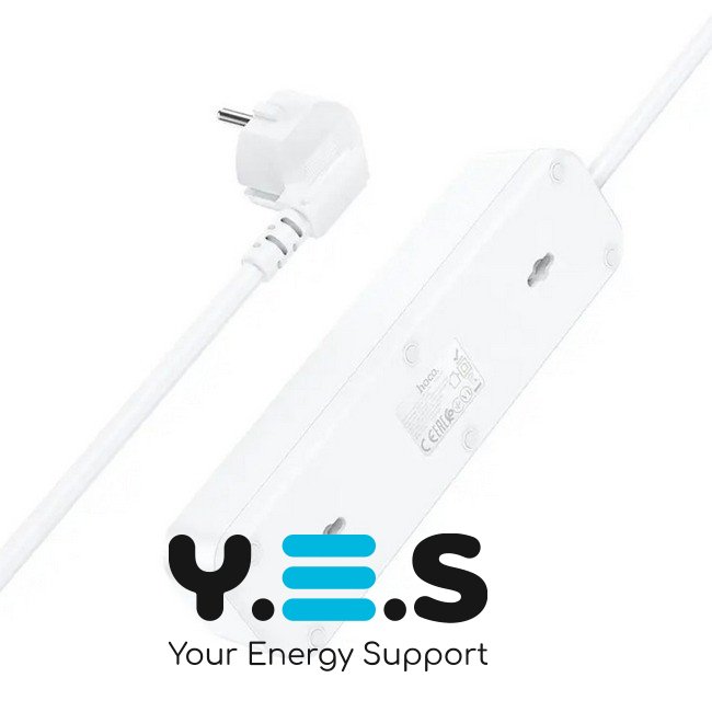 Подовжувач мережевий HOCO NS2 3-position extension має 3 розетки з універсальним гніздом, що підійде до великої кількості видів виделок. Є кнопка увімкнення/вимкнення.