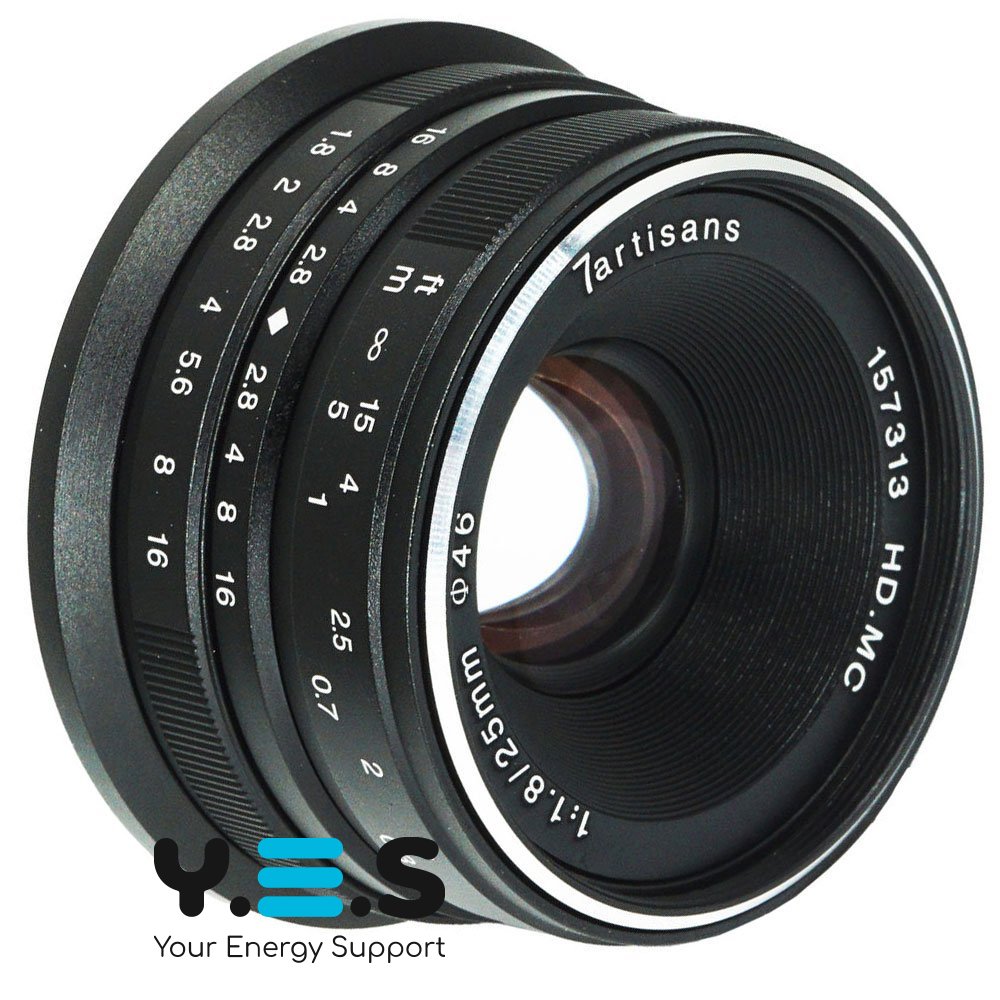 Компактний і універсальний об'єктив 7Artisans 25mm f/1.8 (Micro Four Thirds) для камер системи Micro Four Thirds, забезпечує фокусну відстань 50 мм в повнокадровому еквіваленті. Пропонує повне ручне управління, простий у використанні і готовий прекрасно впоратися з портретною зйомкою і повсякденною зйомкою.