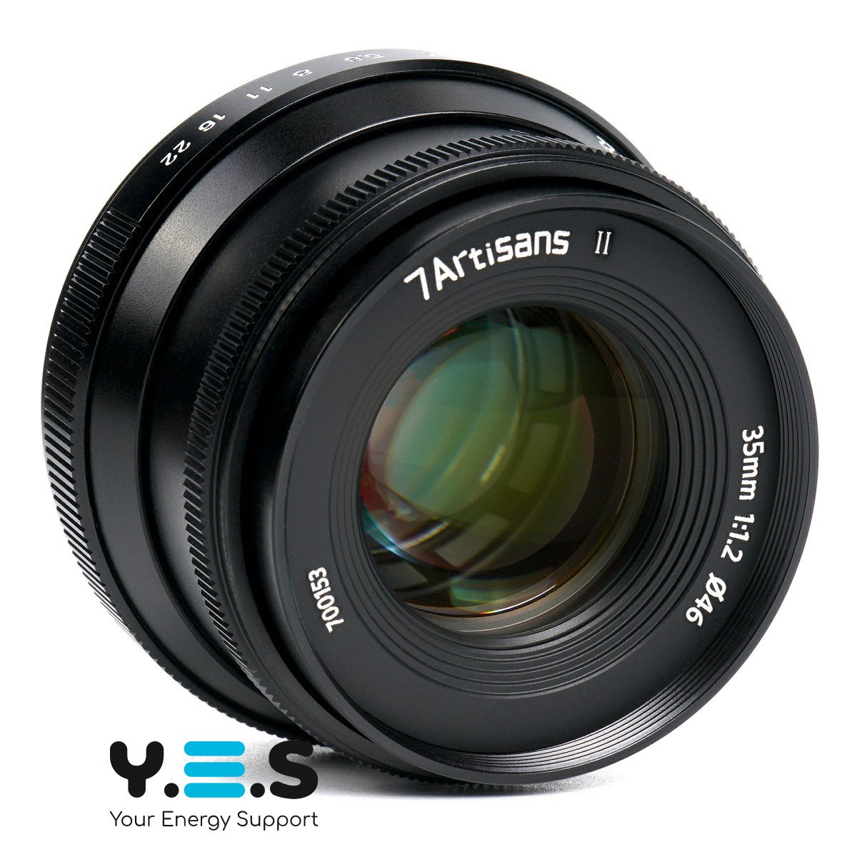 Компактний об'єктив 7Artisans 35mm f/1.2 ІІ (Fujifilm X) призначений для камер Fujifilm FX-mount. Елегантний дизайн об'єктиву, легкість, всього 150 грам, він добре підходить для повсякденної зйомки. Його оптична конструкція з 6 елементів в 5 групах добре поєднується з світлосильною максимальною діафрагмою f/1.2 для роботи в умовах низької освітленості, а також забезпечує підвищений контроль за глибиною різкості для роботи з методами вибіркового фокусування.