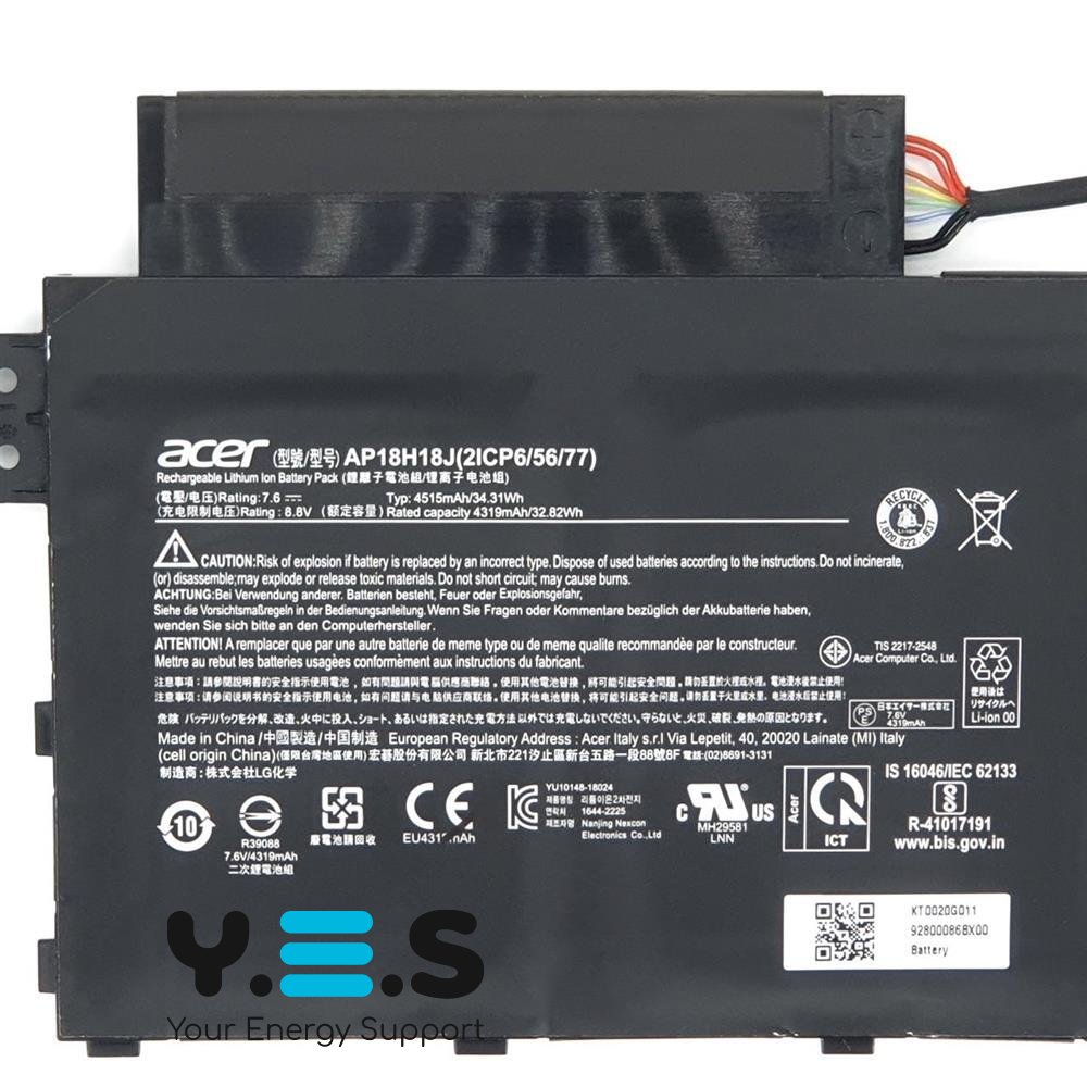 Original батарея AP18H18J до Acer Spin SP314-53 7.6V 4515mAh (34.31Wh)