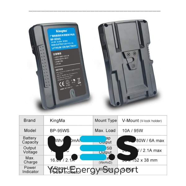 | Модель | Батарея KingMa BP-95WS V-Mount |