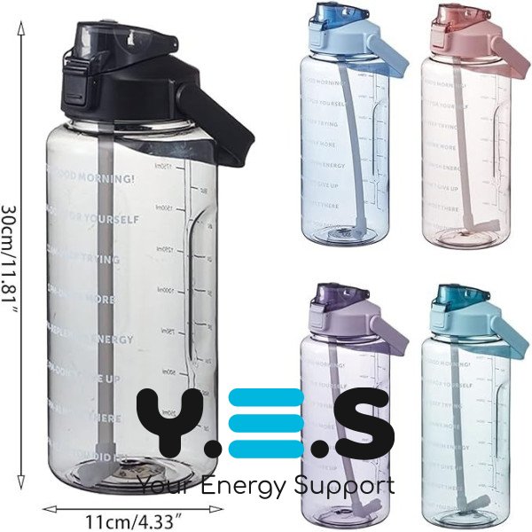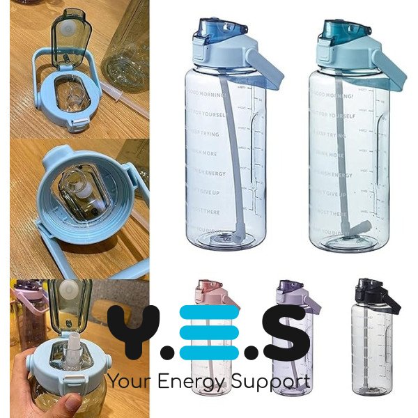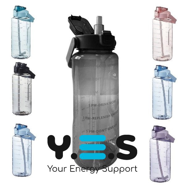 Пляшка для води 2 л з соломинкою та ручкою, пластикова