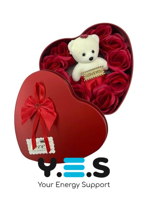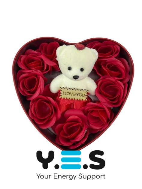 Подарунковий набір сувенірного мила: ведмедик і трояндочки в коробочці-сердечку