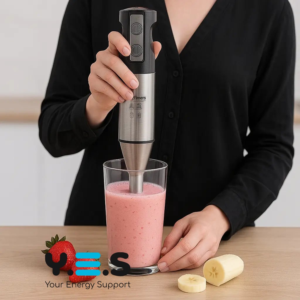 Погружний блендер Hoffmans HM-8023 — зручний ручний блендер для щоденного використання. Завдяки потужності 800W та 2 швидкостям він допоможе швидко подрібнювати та змішувати інгредієнти, а металева ніжка робить конструкцію практичною та надійною. Підійде для приготування крем-супів, соусів, пюре та інших страв вдома.