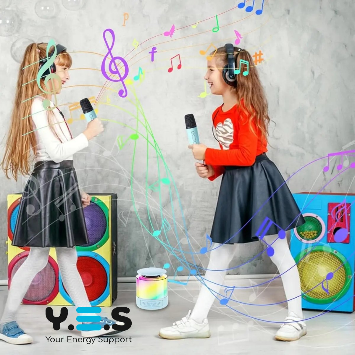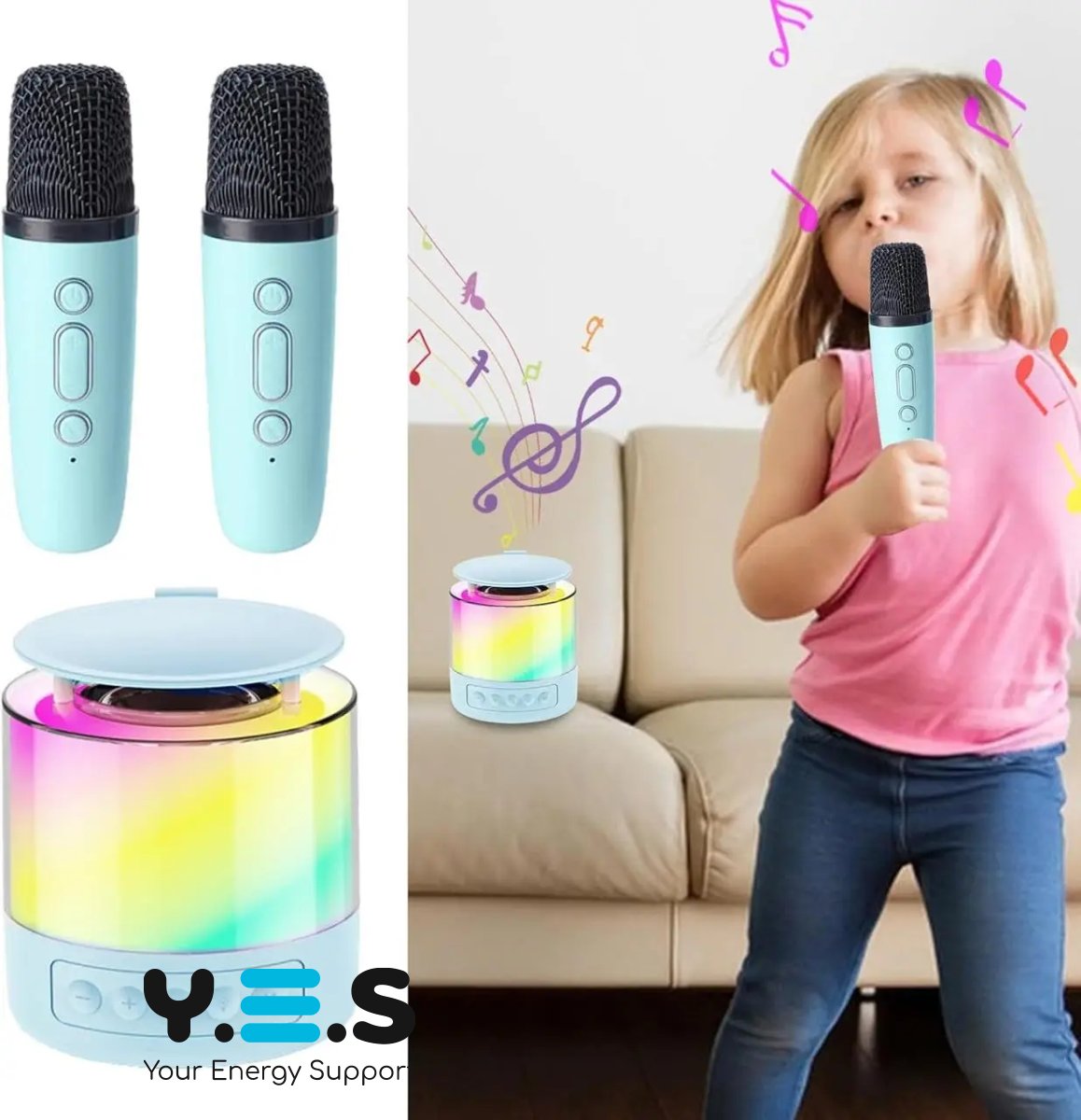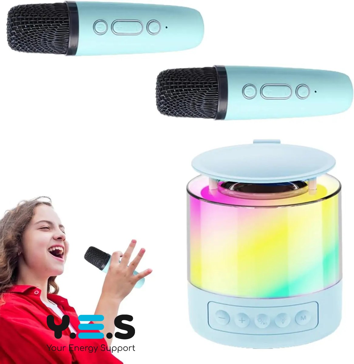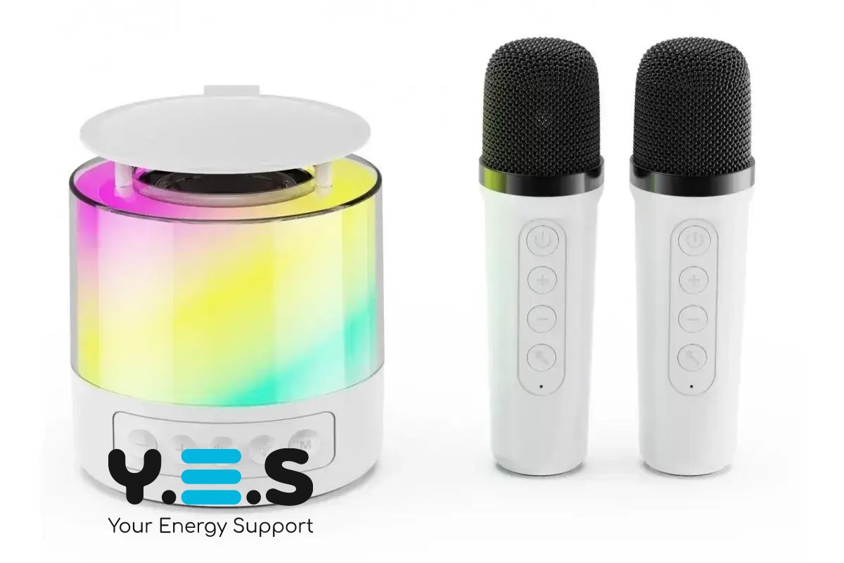 Портативна колонка K19 з караоке: 2 бездротові мікрофони, RGB-підсвітка, Bluetooth 5.3