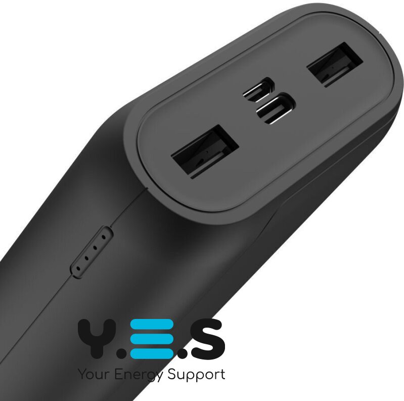 Корпус павербанку гладкий, проте завдяки добре продуманій формі та розмірам (143х72х28 мм) його зручно тримати просто в одній руці. Павербанк може стояти як горизонтально так і вертикально, що може стати в нагоді в ситуаціях, коли є дефіцит простору.