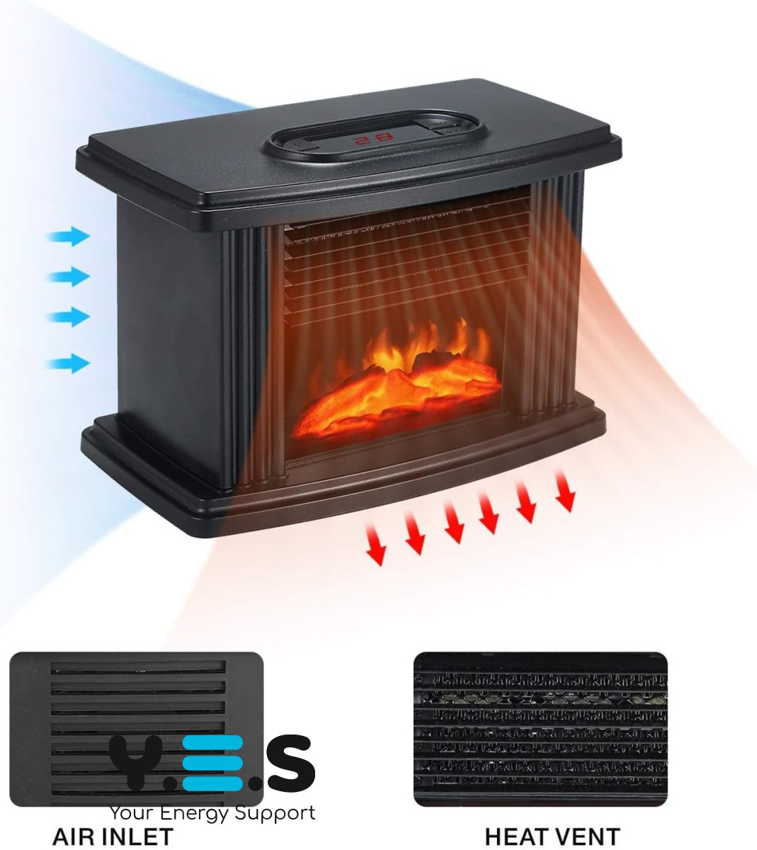 Портативний міні-обігрівач-камін Flame Heater для дому з ефектом полум’я