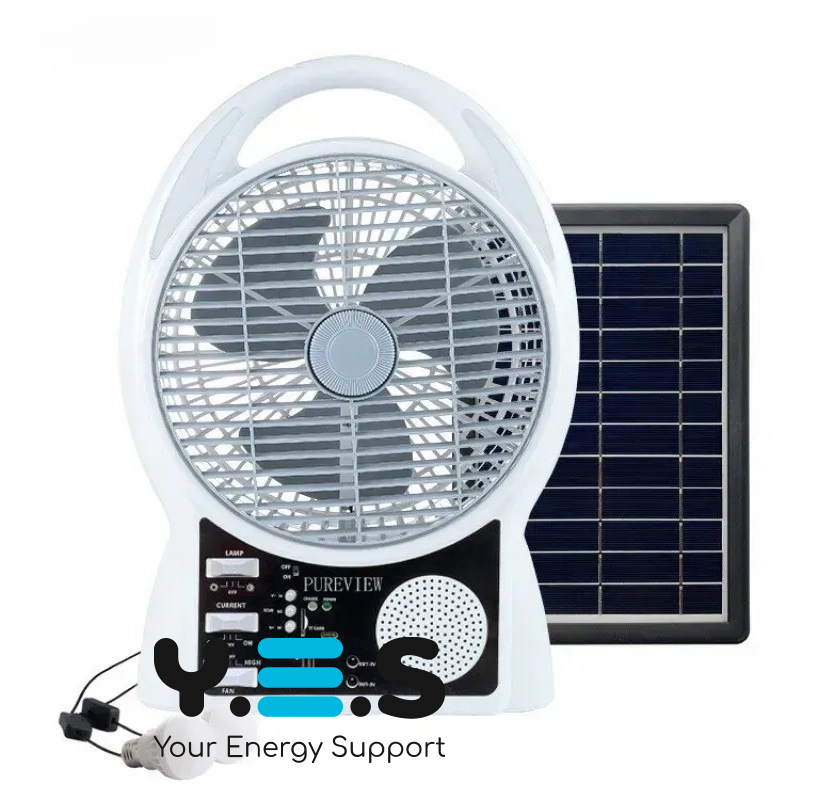 Портативний вентилятор 4в1 — практичний 8″ настільний вентилятор з акумулятором для щоденного використання вдома, на дачі, у кемпінгу або під час відключень електроенергії. Поєднує охолодження, сонячну панель для підзарядки, Bluetooth, радіо та LED-підсвітку. Якісний і надійний варіант на кожен день.