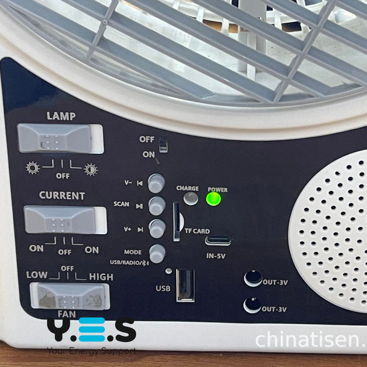 Портативний вентилятор 4в1 8″: сонячна панель, акумулятор, Bluetooth, радіо та LED-підсвітка