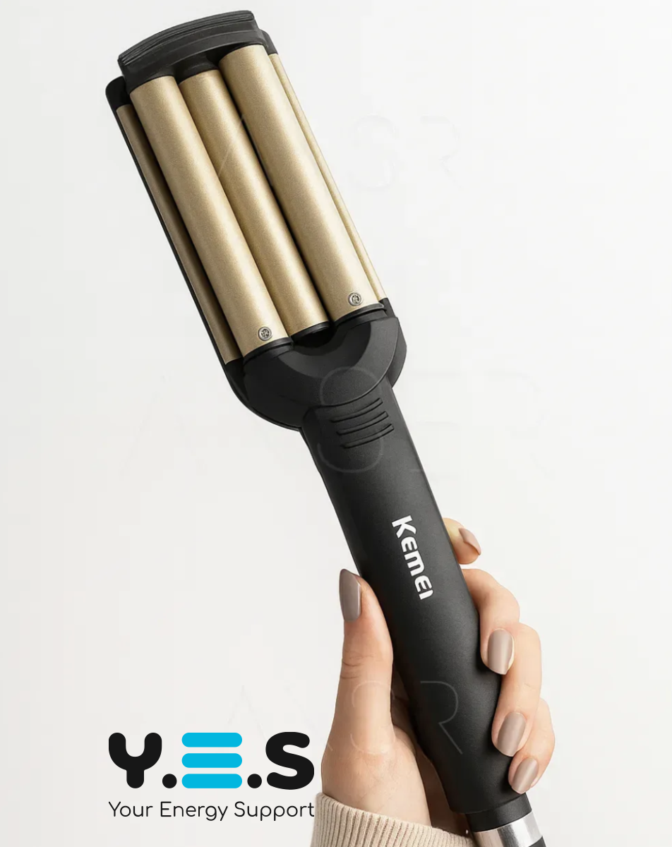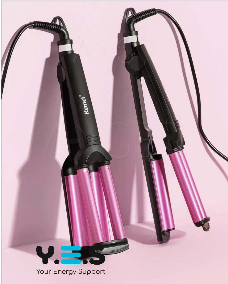Потрійна плойка Kemei JFQ-KM-2022 — керамічна плойка для створення локонів і хвиль із виразною текстурою. Підходить для щоденного використання вдома: зручна у роботі, допомагає швидко сформувати акуратну укладку та забезпечує стабільний результат.