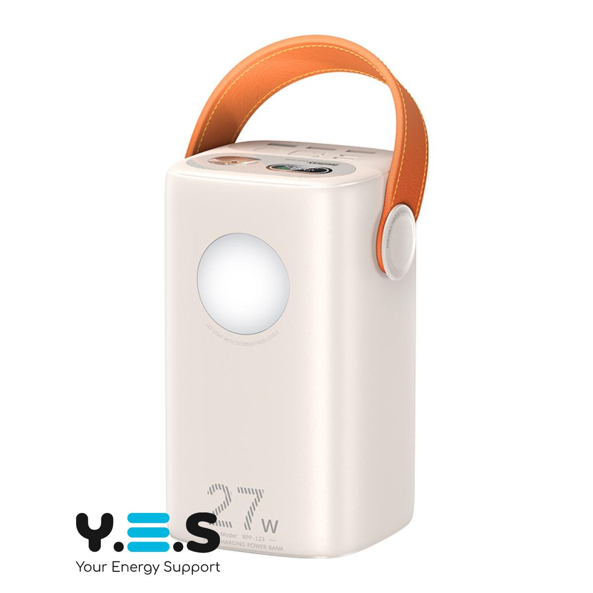 BestBatt УМБ Remax RPP-123 60000 mAh — місткий та практичний павербанк у бежевому кольорі для щоденного використання. Підтримує швидку зарядку до 27W та оснащений LED-ліхтариком, що зручно в дорозі, під час відключень електроенергії або на природі. Якісний і надійний аксесуар для заряджання ваших гаджетів у будь-яких умовах.