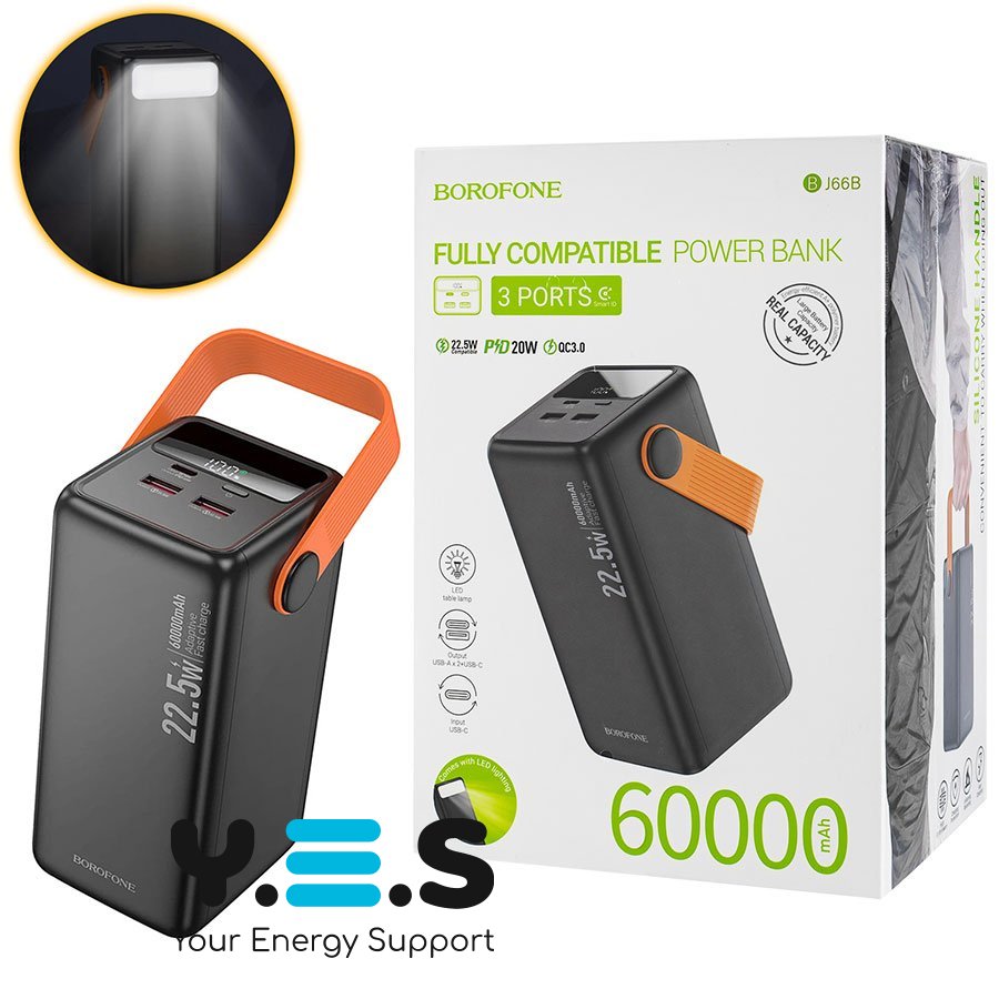 Power Bank BOROFONE BJ66B Magnifico 22.5W+PD20W 60000mAh чорний (6941991115165) — потужний зовнішній акумулятор для тривалого живлення ваших пристроїв. Гарантія: 6 місяців. Ємність: 60000mAh.