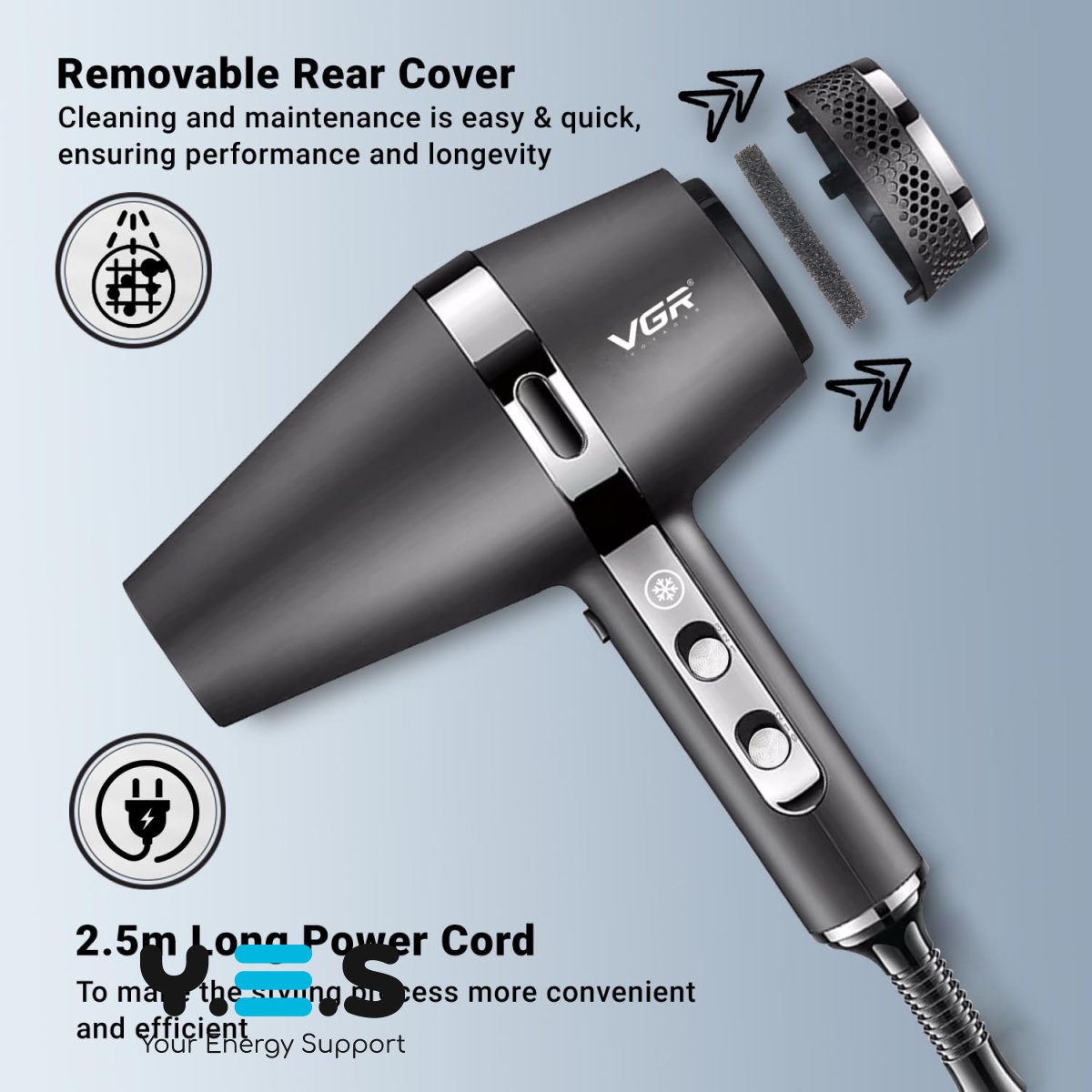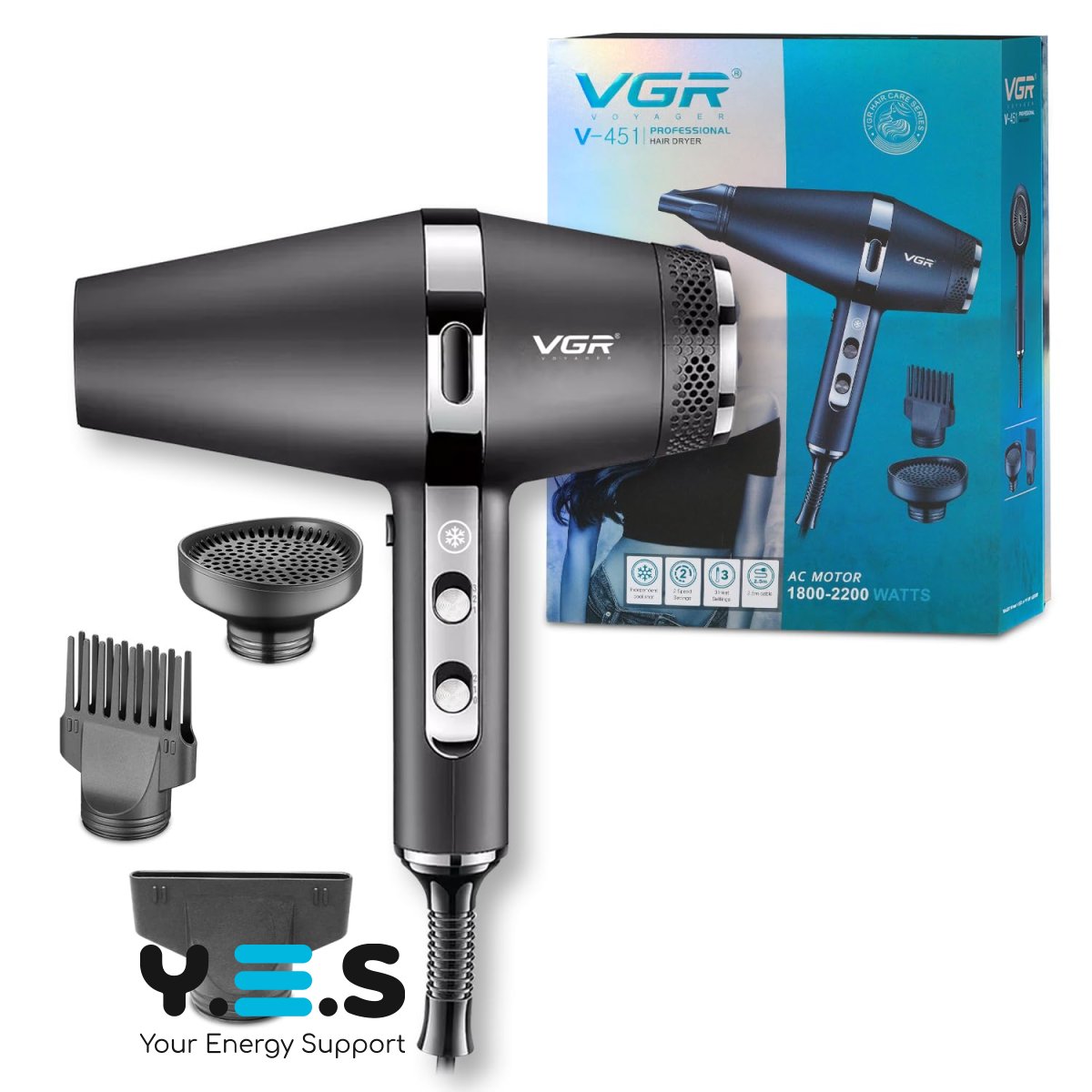 Професійний фен для волосся VGR V-451 — зручний фен для сушіння та укладання волосся з функцією іонізації. Підходить для щоденного використання вдома, допомагає швидко висушити волосся та зробити охайну укладку. Модель VGR V-451 — практичний і надійний варіант для регулярного застосування.