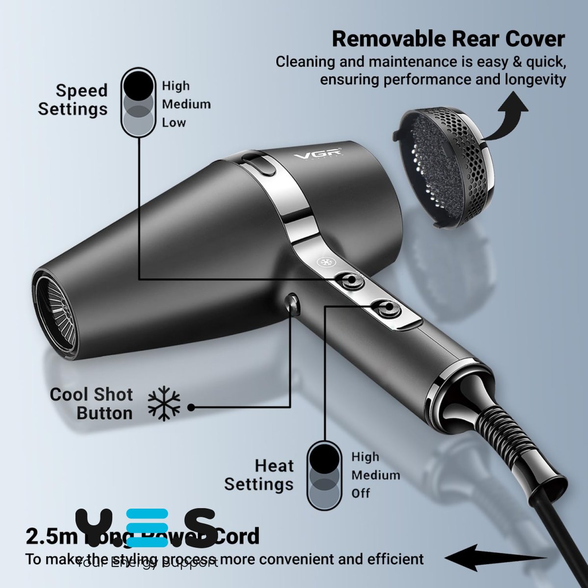 Професійний фен VGR V-451 для сушіння та укладання волосся з іонізацією