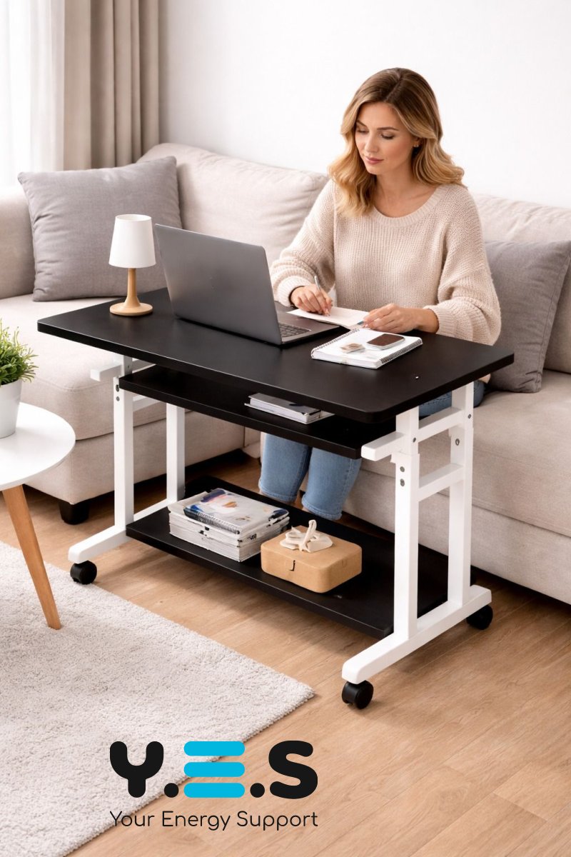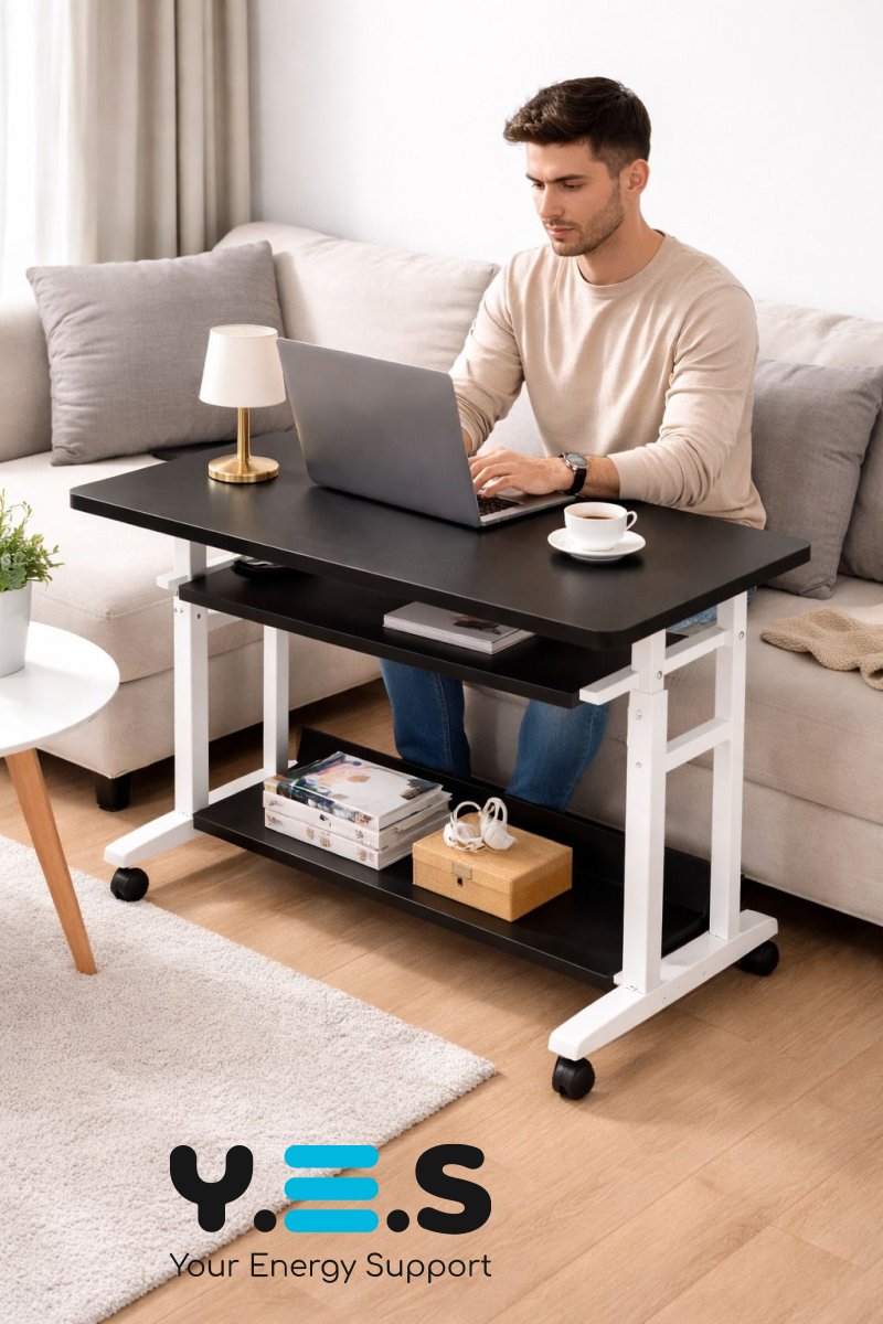 Регульований мобільний комп'ютерний стіл 1845 — практичний стіл для роботи та навчання, який зручно переміщувати завдяки мобільній конструкції. Модель оснащена висувною підставкою для клавіатури, що допомагає організувати робоче місце та заощадити простір на стільниці. Підійде для щоденного використання вдома або в офісі.