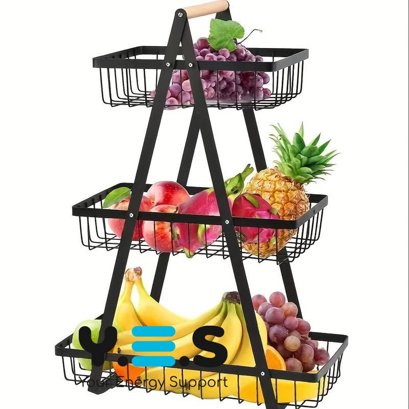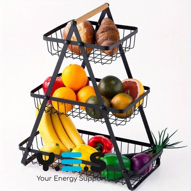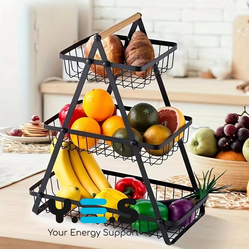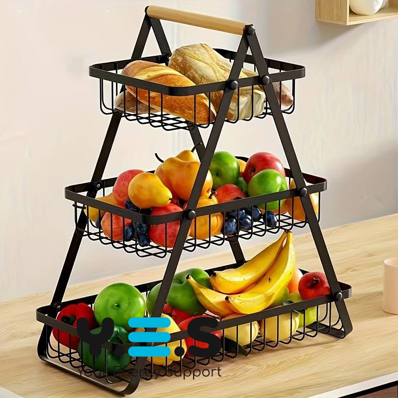 Настільний триярусний кошик-фруктівниця Triple Fruit Basket — практичне рішення для зберігання фруктів та інших продуктів на кухні. Розбірна металева конструкція економить місце, а дерев’яна ручка забезпечує зручне перенесення. Кошик підходить для щоденного використання, виглядає охайно та допомагає підтримувати порядок на столі.