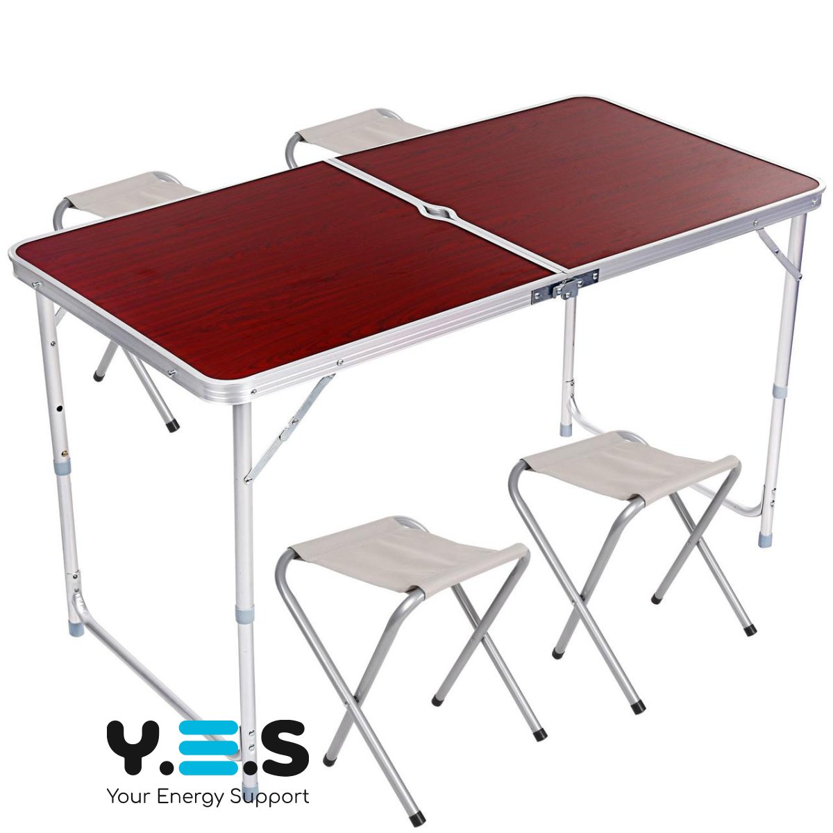 Розкладний стіл‑чемодан 120×60 см + 4 стільці Folding Table для пікніка, риболовлі, дачі